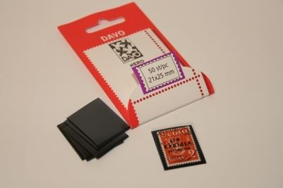 Davo suojataskut leikattuina, 50 kpl, musta pohja, merkin koko 21x25mm