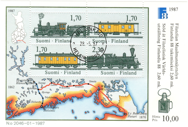 1987 Finlandia 88, Postin kuljetus rautateitse pienoisarkki o (vastaava kuin kuvassa)