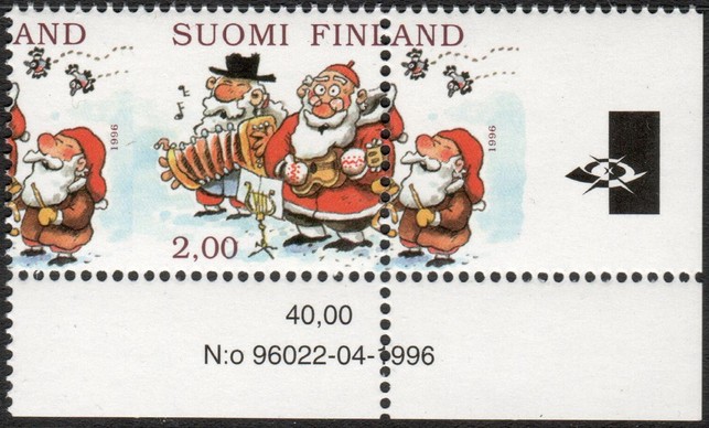 1996 Joulupostimerkki 2,00 mk iso hammastesiirtymä **