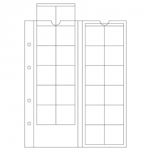 Leuchtturm Optima-kolikkolehti (sivun koko 202x252 mm) max 34 mm, pakkaus 5 kpl. Optima-lehtien taskut eivät sisällä kemiallisia pehmittimiä eikä happoa ja ne ovat turvallisia kolikoiden säilyttämiseen ja esittelyyn.