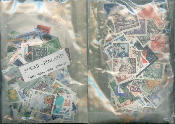 TARJOUS! Postimerkkipakkaus, 1000 erilaista suomalaista merkkiä (Ovh. 110,00 €)