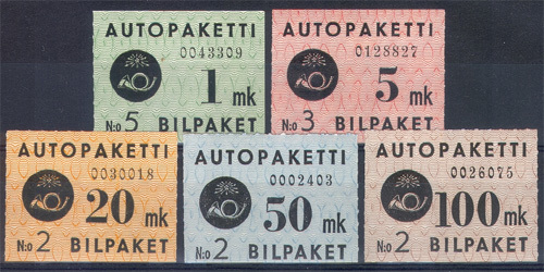 1949/50 Autopaketti 1 - 100 mk ** (vastaava kuin kuvassa)