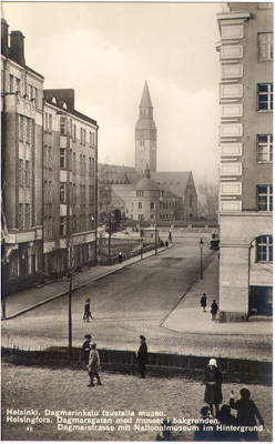 Helsinki Dagmarinkatu taustalla museo, käyttämätön kortti