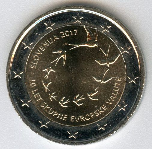 2017 Slovenia 2 € Euron 10 vuotis päivä UNC