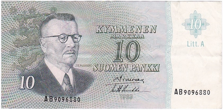 1963 10 mk kl 4 (allekirjoitukset,sarjanumerot ja kirjaimet vaihtelevat)
